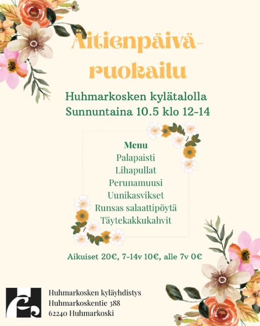 Seuraa meitä myös Facebookissa @Huhmarkosken kyläyhdistys
